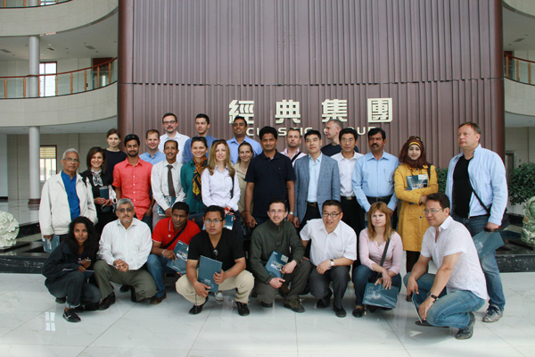 亞歐二十六國政府官員及行業(yè)協(xié)會領(lǐng)導(dǎo),不顧勞途奔波,下車后就興致勃勃的參觀了經(jīng)典集團(tuán)辦公樓,為其古典與現(xiàn)代結(jié)合的優(yōu)美辦公環(huán)境所嘆服,隨后苗董帶領(lǐng)客人一行,參觀了職工活動中心,生產(chǎn)車間,客人詳細(xì)了解了車間生產(chǎn)狀況及員工的福利待遇情況,最后在會議中心,集團(tuán)國際事業(yè)部負(fù)責(zé)人與考察團(tuán)一行進(jìn)行了座談,客人一行詳細(xì)了解了公司的概況以及海外市場業(yè)務(wù)進(jìn)展?fàn)顩r,集團(tuán)國際事業(yè)部負(fù)責(zé)人一一解答,座談后與斯里蘭卡貿(mào)易和投資促進(jìn)會秘書長哈尼爾先生(Nihal Aluvihare)及尼泊爾、匈牙利、保加利亞等國簽署了對外貿(mào)易合作協(xié)議。
