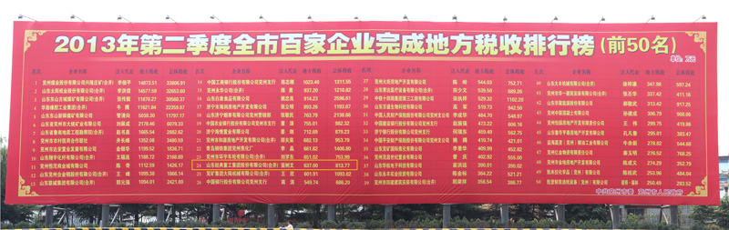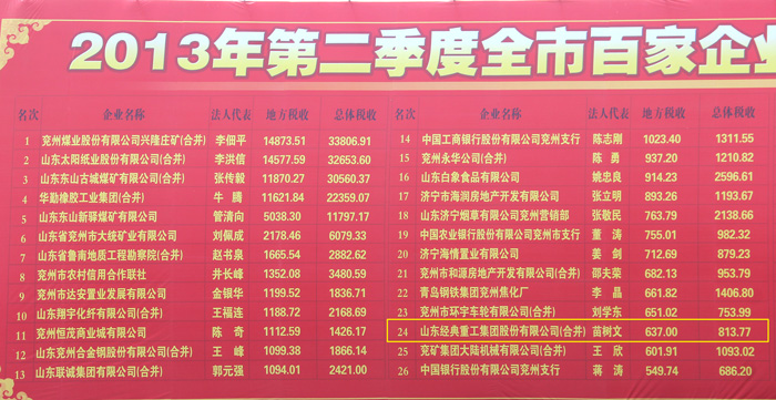 經典集團2013年第二季度納稅躍升兗州生產制造業前十強