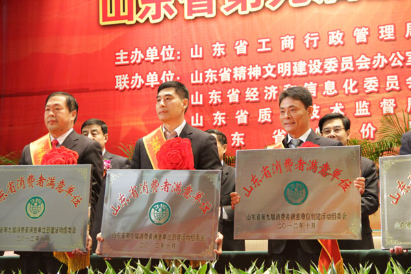 此次活動(dòng)經(jīng)過(guò)消費(fèi)者滿意度調(diào)查、各市初評(píng)、材料審查、省考評(píng)組考評(píng)、征求主管部門意見(jiàn)、省評(píng)審委員會(huì)審定、社會(huì)公示等流程,由省消協(xié)、省文明辦、省工商局、省質(zhì)監(jiān)局、省衛(wèi)生廳、省物價(jià)局、省總工會(huì)等13個(gè)部門共同認(rèn)可肯定。該項(xiàng)榮譽(yù)的獲得標(biāo)志著我公司的商品質(zhì)量及服務(wù)水平不僅得到了濟(jì)寧地區(qū)廣大消費(fèi)者的高度認(rèn)可,在省、乃至全國(guó)也具有了一定的知名度。山東省副省長(zhǎng)張建國(guó)同志也指出,消費(fèi)者滿意單位是塊“金字招牌”,是政府、社會(huì)和廣大消費(fèi)者對(duì)誠(chéng)實(shí)守信、依法經(jīng)營(yíng)者的褒獎(jiǎng)與認(rèn)可。