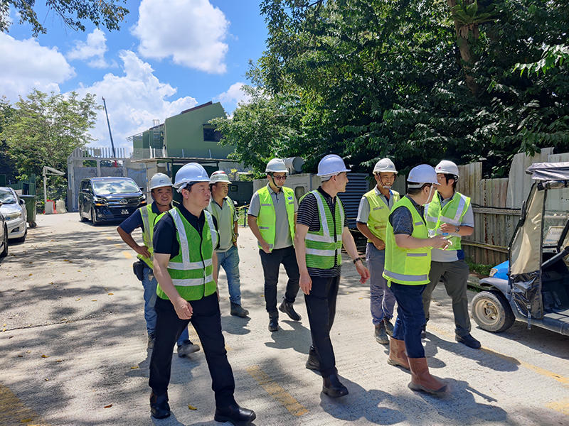 中國京冶建設工程(新加坡)有限公司執行副總裁許亞男,執行副總裁陳曉冬,鋼結構高級運營經理翟東,鋼結構運營副經理胡明陪同參觀座談。